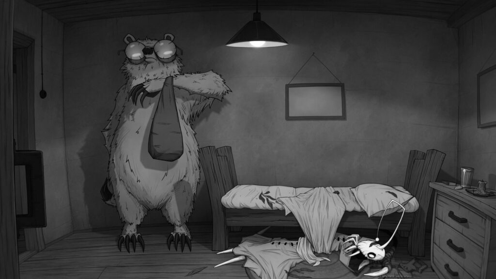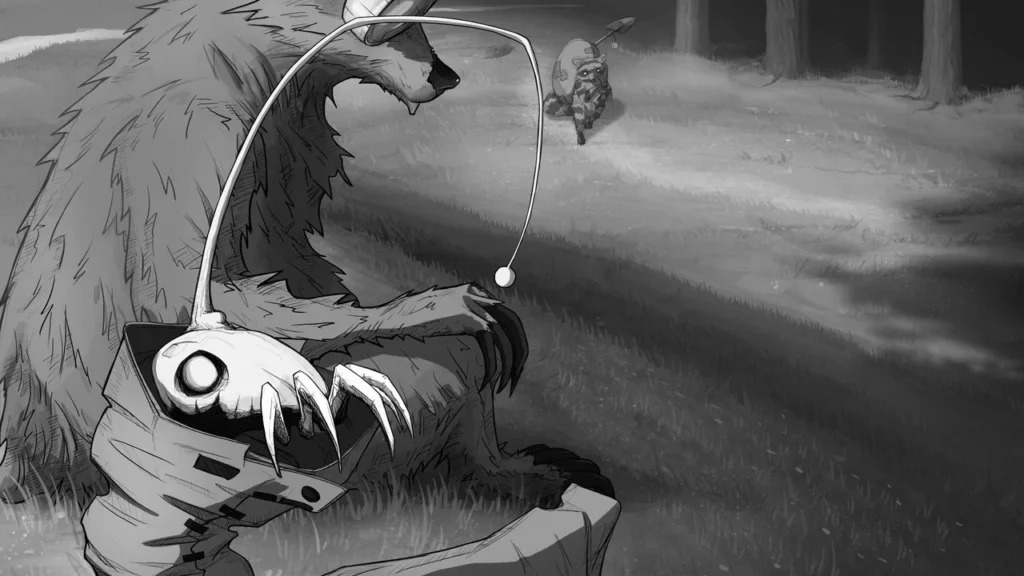 Как вы создавали дизайн персонажей? Главный герой, например, визуально напоминает рыбу-удильщика — это намеренная ассоциация или случайное сходство?